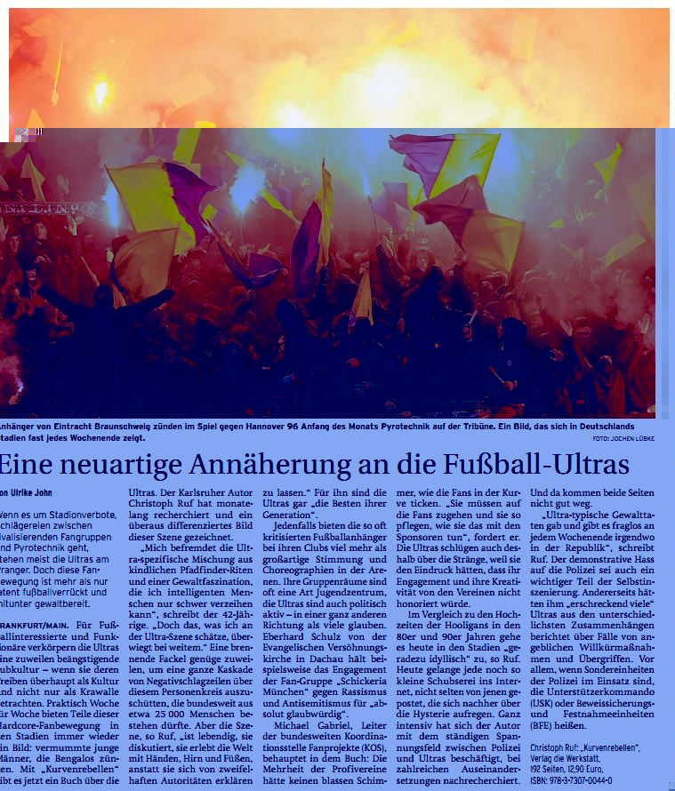 Wen dem so ist....muß ich ehrlich sagen...das mir die Gegeninitiativen der normalen Fans richtig imponieren. Auf Schalke z.b. benötigt man die Ultras überhaupt nicht. Die Fangesänge und Seitenwechsel bei den Sprüchen finden auch so statt, prima so. Das ist eine echte Fanansage von Leuten die mit Alkohol anscheinend umgehen können...also mal ein Gepflegtes am verdienten Wochenende ohne Randale und Straftaten...richtig gut.