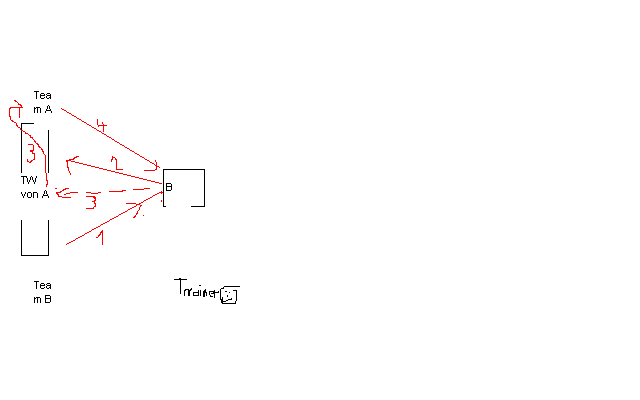 4= A läuft zeitgleich mit den Aktionen 3 und 3....in das Rechteck zum Kopfball durch Wurf von Mitspielern ![]()