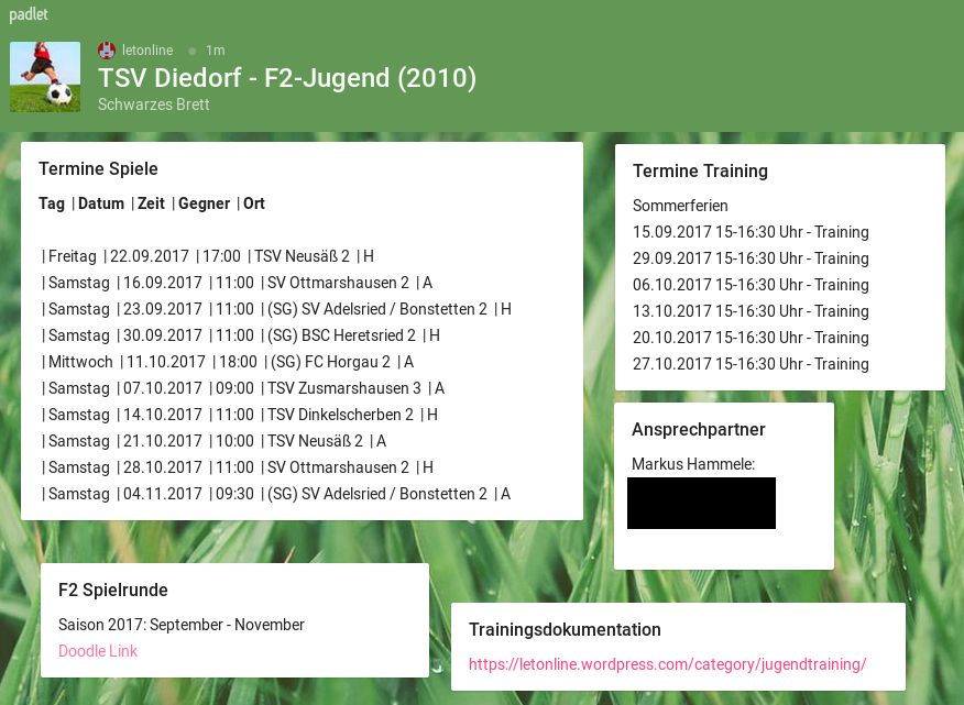 Dort haben wir den Link zu padlet - nicht nur von meinem Team, sondern auch von dem neuen Bambini Trainer - dem hat meine Vorgehensweise auch gefallen und er macht es jetzt genauso. Wer nähere Infos haben möchte, den bitte ich um eine PN (nicht das Uwe wieder Beschwerden bekommt ;-)).