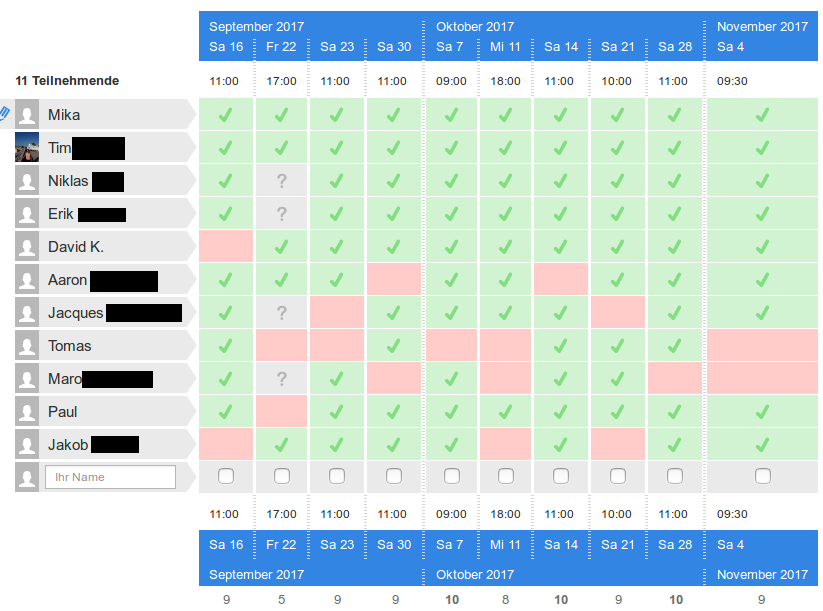 Wenn z.B. die Frage kommt, "wer ist am 31.12. für ein FS da?" dann bekomme ich zeitnah von fast allen einen Daumen hoch oder runter.
