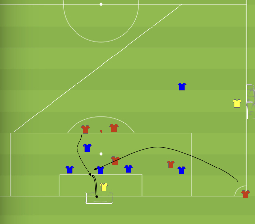 in einer Spielform mit Spielrichtung, also auf 2 Tore, würde das eine schnelle Spielfortsetzung behindern. gegner ist vielleicht ungeordnet und es kann schnell eröffnet werden etc. etc.