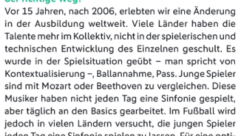 Interessant finde ich Deinen Ansatz, dass der Leistungsbereich als Vorreiter und gutes Beispiel vorangehen sollte damit speziell die Leistungsorientierten Eltern und Spieler von den Veränderungen überzeugt werden.