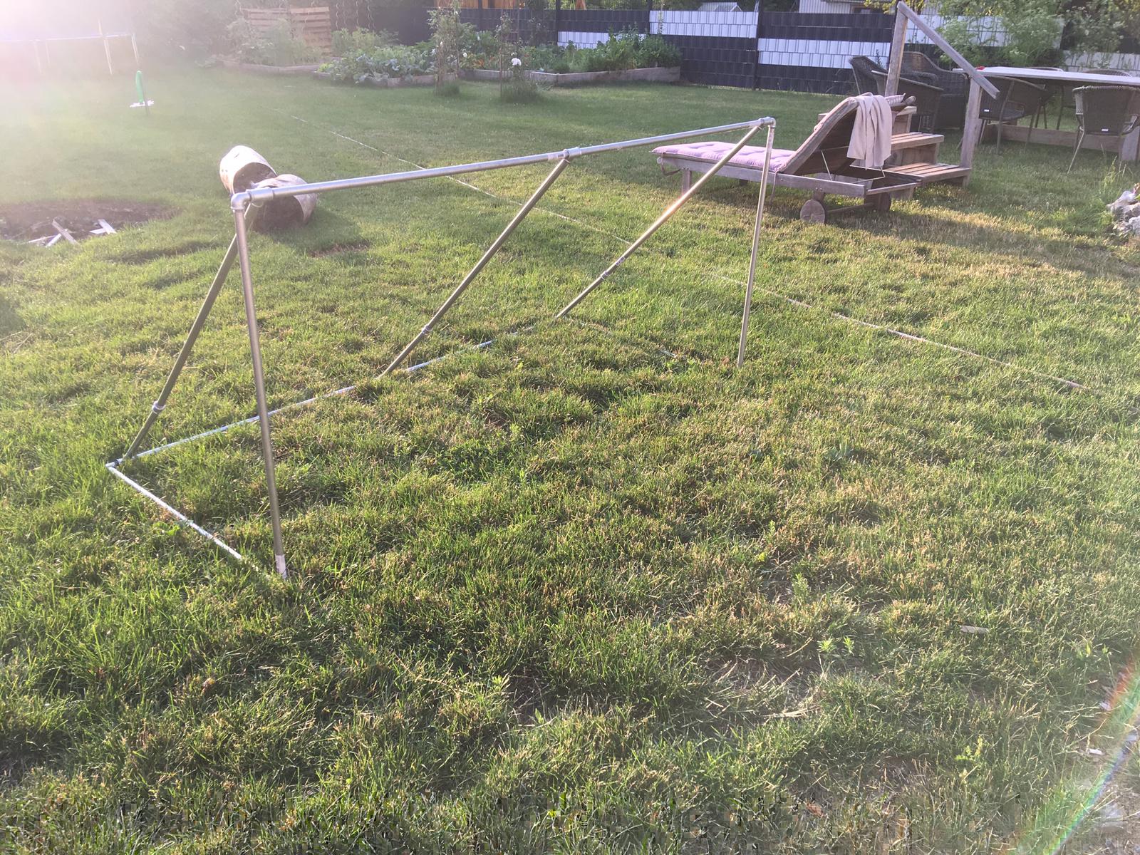 Hallo Leute, um ca.90€ pro Stück habe ich inkl Netz zwei Minitore 2x1m aus 1/2 Zoll Wasserrohren gebaut. Netze sind noch nicht montiert