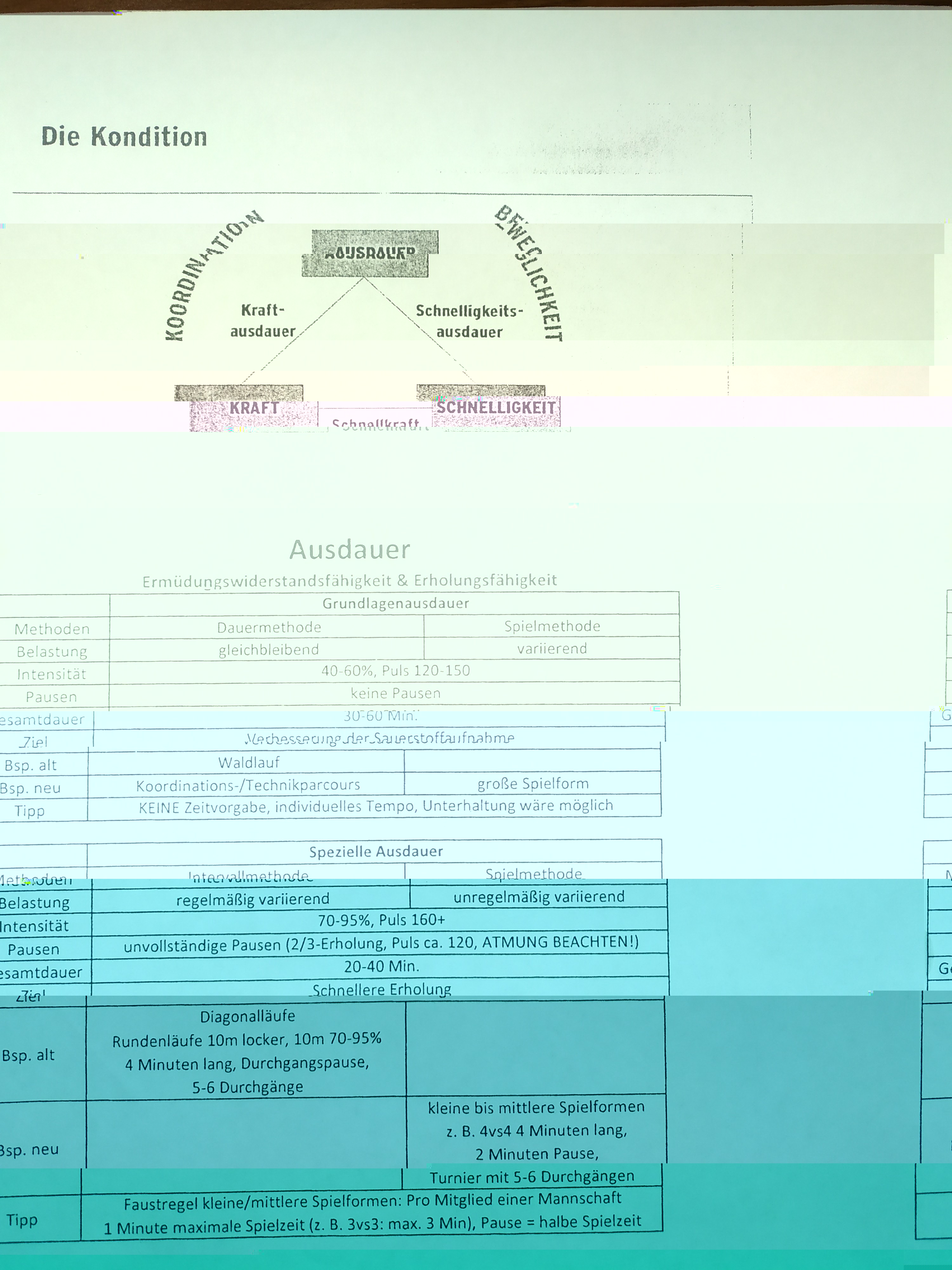 Ich hänge mal ein Bild an, was bei uns im Trainer Lehrgang (Hessischer Fußballverband) zum Thema Ausdauertraining eingesetzt wurde und nach dessen Vorbild mussten Ausdauereinheiten erstellt werden.