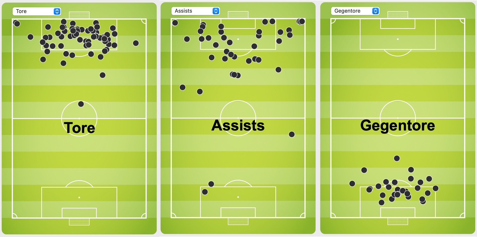 Meiner Marius Fischer bei twitter.com (@Gegenpressing91) - z.B. Lewandowski-Tore in dieser Saison; Tore von Karim Benzema in der Champions League; Assists von Messi beim FC Barcelona oder Modric bei Real