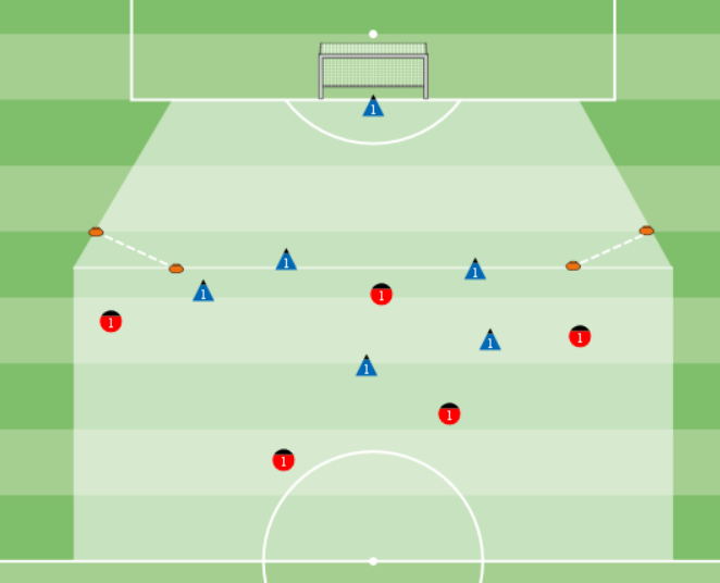 Und natürlich sollte es immer ein klares Ziel für die Verteidiger geben, also Dribbellinie, Hütchentore oder Minitore.
