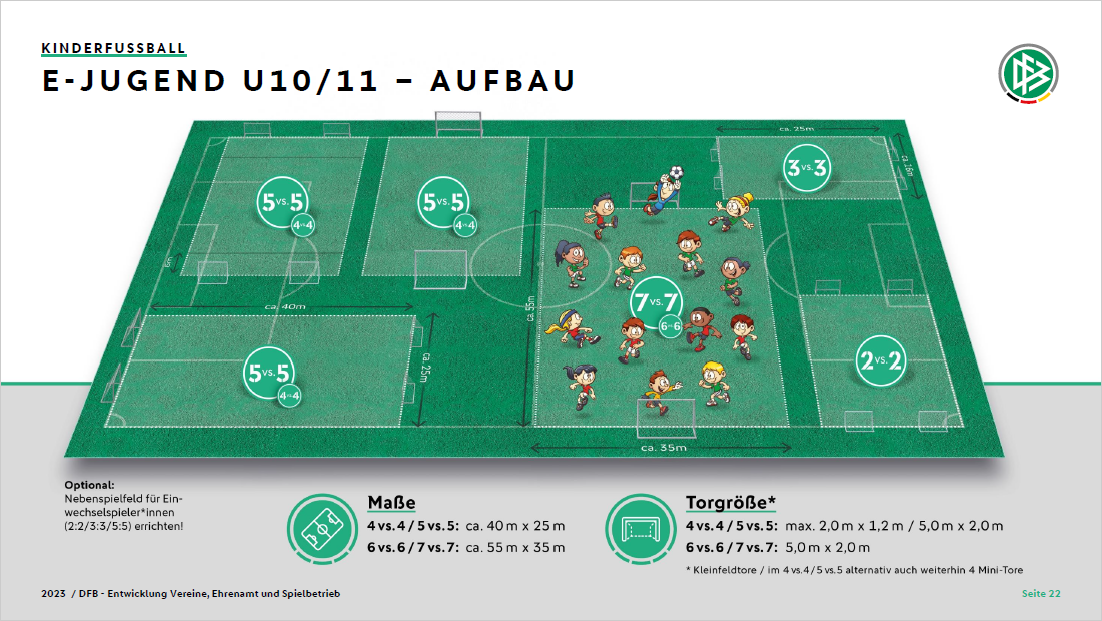 • Laut Leitfaden sind genau die Spielformen in den Altersklassen möglich, die du sinnvoll findest.