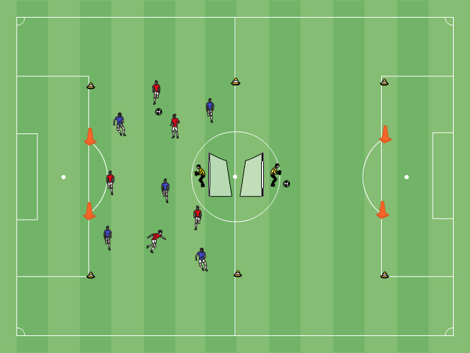Das Training besteht mitlerweile nahezu vollständig aus Spielformen. Wir spielen dabei viele Fußballspiele auf Kleinfeld im 3 gegen 3 oder 4 gegen 4 mit oder ohne Provokationsregeln. Es wird nach Möglichkeit alles in Wettbewerbsform gespielt und wenn möglich mit Torabschluss. Dennoch ist kaum mal ernsthafte Motivitation zu erkennen. Die Kids selbst wollen eigentlich ausschließlich ein "normales" Spiel auf "richtige" Tore spielen. Doch selbst hier ist kein Tempo oder wirklicher Wille zu erkennen...