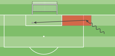 Eher Richtung Tor lenken und somit nicht mehr bis auf die Toraus-Linie ziehen?