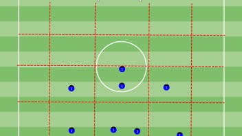 Teile das Spielfeld in Querzonen von ca. 12,5 m Höhe und Längszonen von ca. 12-15m.