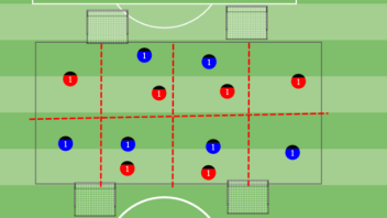 Nach Ballverlust so schnell wie möglich als Team organisieren, so dass man maximal 2 Querzonen und 3 Längszonen besetzt