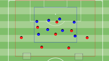 4 Verteidiger in den eigenen Hälften sind in ihrem Quadrat "gefangen"